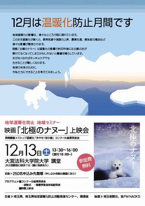 地球温暖化防止地域セミナー 映画「北極のナヌー」上映会 及び ストップ温暖化フォーラム“冷やせ!彩の国”結果発表会