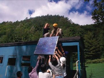 標高700m、10世帯の集落にある廃校を再利用したエコスクール。「もったいない、ありがたい」を合言葉に、自然エネルギーを取り入れた・循環型の生活スタイルを、身の丈にあったサイズで、体験を通して楽しみながらまなぶ活動、施設づくりを進めている。コンポストトイレ、バイオガス装置をはじめ、環境共生建築のカフェもオープン。2008年度は、自然エネルギー体験滞在施設「エコキャビン創出プロジェクト」を実施する。