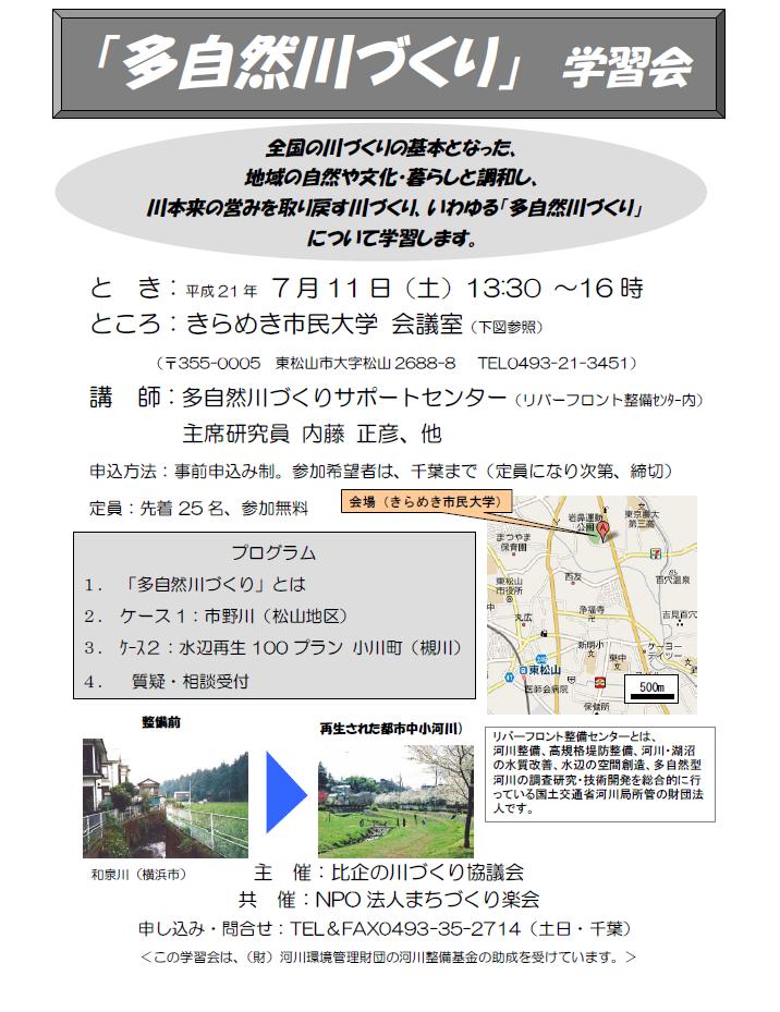 ≪この学習会は、(財)河川環境管理財団の河川整備基金の助成を受けています。≫