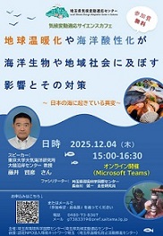 「地球温暖化や海洋酸性化が海洋生物や地域社会に及ぼす影響とその対策〜日本の海に起きている異変〜」を開催します。