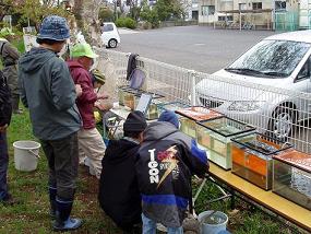 ・魚類調査:柳瀬川で魚を捕り、「調査」と「水族館」展示をします。