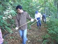野外での体験は、東海北陸自然遊歩道の整備のための草刈りを行ないます。