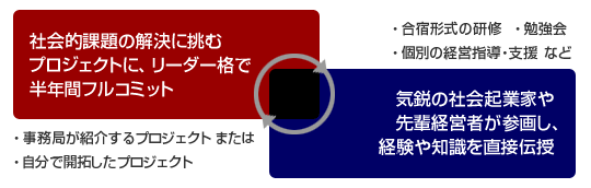 半年間のプログラム期間中は、実際に社会の課題に挑む事業・