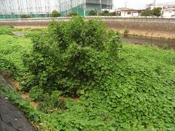 柳瀬川の河川敷に繁茂する、特定外来植物の
