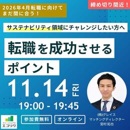 【11/14(金)開催】サステナビリティ領域にチャレンジしたい方へ 転職を成功させるポイント