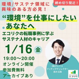 【1/16(金)開催】“環境”を仕事にしたいあなたへ エコリクの転職事例に学ぶサステナ人材のキャリア(後日アーカイブ配信)